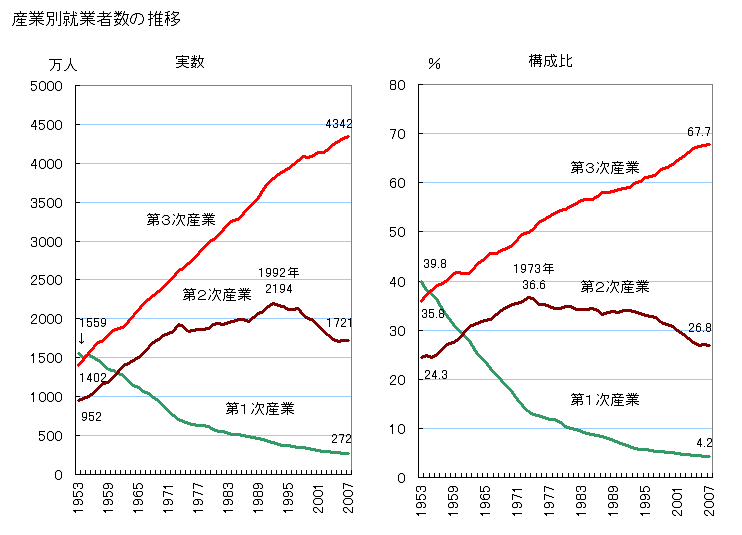 <産業別就業数の推移> [5]はこちらからお借りしました。