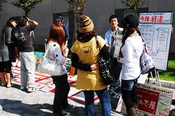 今や誰もが、この社会は何かおかしいと感じ、社会の事を真剣に考える場や仲間を求めています。そのような共認形成の場の一つが、道行く人と「なんでだろう?」という問いを通して事実を追求し、答えを出す『なんでや露店』です。